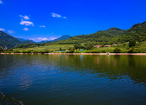 来到青山沟我们才发现这里一片葱郁,芳草萋萋,实在是避暑消夏的胜地,我们坐船游览的青山湖,水色碧绿清澈,不时还能看到当地居民乘竹筏在水中捕鱼,这样的原生态景象让长时间生活在钢筋水泥构建的城市中的我们觉得美不胜收。