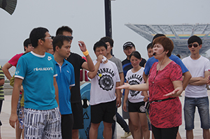 在旅行的第一天,我们在白色细腻的沙滩上开始了非常逗乐的游戏,规则是用不同的方式走过导游画出的通道,所有的参赛者走路的方式都不能够重复,所以同事们八仙过海各显神通,什么鸵鸟式,双脚90度式,滚式,脑血栓式的绝活都使出来了,虽然弄得满身沙子,大家都觉得非常开心。